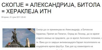 Meanwhile, Facebook users have started a peculiar initiative for the renaming of Skopje and Bitolia as Alexandria and Heraklea respectively in order to further emphasize what Macedonians perceive as their “ancient” history.