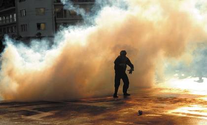 Πρόσφατα, το τραγικό περιστατικό του ψεκασμού στο πρόσωπο με χημικά του εργαζόμενου Αθανασάκη που συμμετείχε στη διαδήλωση της 5/05/2010 στο μπλοκ της ΠΟΕ-ΟΤΑ και που διατρέχει άμεσο κίνδυνο απώλειας της όρασης του, έχοντας υποστεί μεγάλης έκτασης εγκαύματα».