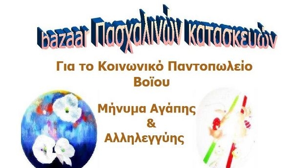 Ειδικό περίπτερο με bazaar πασχαλινών κατασκευών θα λειτουργήσει από την εθελοντική ομάδα και το Δήμο Βοΐου, το τριήμερο 19-20-21 Απριλίου, στο ΒΙΟΠΑ Σιάτιστας όπου θα πραγματοποιηθεί η έκθεση γούνας.
