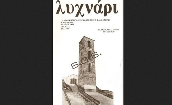 Από τη ΔΙΜΗΝΗ ΠΕΡΙΟΔΙΚΗ ΕΚΔΟΣΗ Π.Σ. ΛΙΒΑΔΕΡΟΥ “λυχνάρι”, τεύχος 3, Μάιος 1988