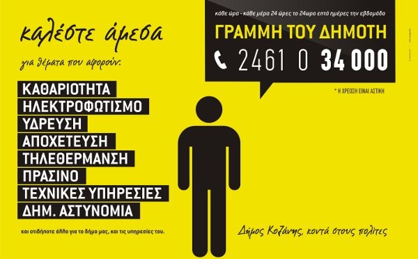 Τους έξι μήνες λειτουργίας της συμπλήρωσε η «Γραμμή του Δημότη», η τηλεφωνική γραμμή άμεσης επικοινωνίας του Δήμου Κοζάνης με τους Δημότες 24610 34000.