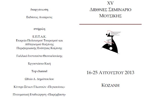 To 15o Διεθνές Σεμινάριο Μουσικής της Κοζάνης διοργανώνεται φέτος από τις 16-25 Αυγούστου στην πόλη της Κοζάνης.