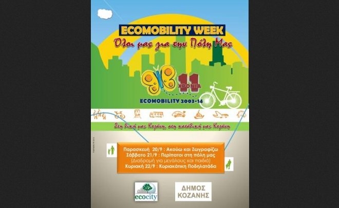Επιλέγοντας να δει με μια διαφορετική ματιά τη μετακίνηση όλων, ο Δήμος Κοζάνης σε συνεργασία με την Δημοτική Κοινότητα Κοζάνης, διοργανώνουν εκδηλώσεις στα πλαίσια της Εκστρατείας “Ecomobility” που διοργανώνει το Ecocity. Στόχος αυτής της προσπάθειας είναι να δοθεί προτεραιότητα στους πεζούς, στα ποδήλατα και στα μέσα μαζικής μεταφοράς.
