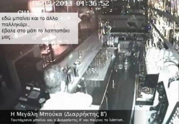 Σε αυτό βλέπουμε τις προετοιμασίες των δραστών, την είσοδό τους στο κατάστημα, τις στιγμές που κλέβουν χρήματα και ένα laptopo, αλλά και την έξοδό τους.