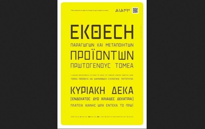 Το Συμβούλιο της Δημοτικής Κοινότητας Αιανής σε συνδιοργάνωση με τον Εμπορικό Σύλλογο Αιανής, τον Σύλλογο Γυναικών και τον Πολιτιστικό Μορφωτικό Σύλλογο Η Πρόοδος, σας καλεί στην Έκθεση Παραγωγών και Μεταποιητών Προϊόντων Πρωτογενούς Τομέα την Κυριακή 10 Νοεμβρίου 2013 στην Πλατεία Αιανής ώρα 11:00 π.μ.
