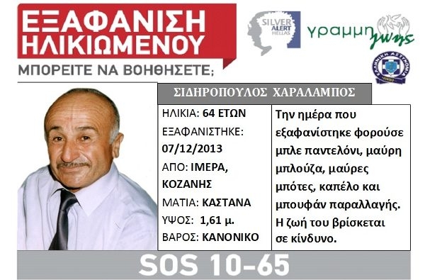 Silver Alert για τον 64χρονο Σιδηρόπουλο Χαράλαμπο από τα Ίμερα Κοζάνης!