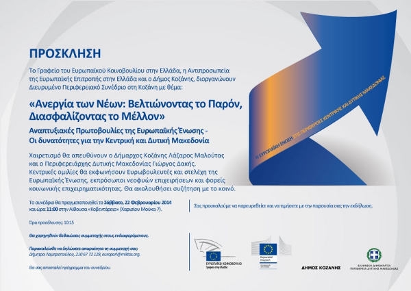 Το Γραφείο του Ευρωπαϊκού Κοινοβουλίου στην Ελλάδα, η Αντιπροσωπεία της Ευρωπαϊκής Επιτροπής στην Ελλάδα και ο Δήμος Κοζάνης διοργανώνουν Διευρυμένο Περιφερειακό Συνέδριο στην Κοζάνη, με θέμα: