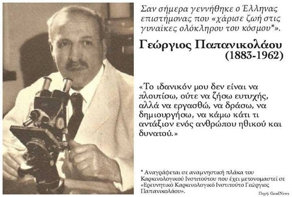 Όλοι οι Έλληνες νοιώθουν υπερηφάνεια για την αδιάκοπη προσπάθεια του Γεώργιου Παπανικολάου, η οποία απέδωσε αξιομνημόνευτα επιτεύγματα αναγνωρισμένα από την παγκόσμια επιστημονική κοινότητα. Τιμώντας τον όρκο στον Ιπποκράτη, διασφάλισε την έγκυρη διάγνωση σε εκατομμύριο γυναίκες εξασφαλίζοντας την ζωή και την υγεία τους.