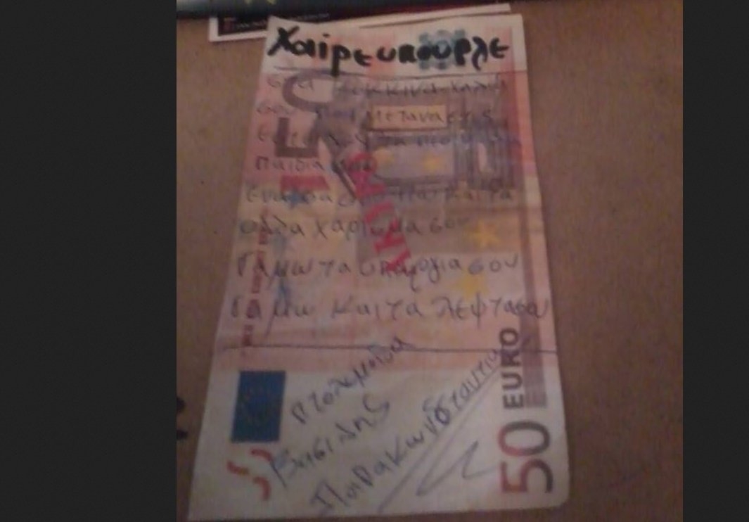 Δεν ήταν λίγοι αυτοί που στις διπλές εκλόγες θέλησαν να στείλλουν το μηνυμά τους όχι με την ψήφο τους, αλλά με το ψηφοδέλτιο τους. Στην Αναρράχη Πτολεμαϊδας ένας ψηφοφόρος αποδείχθηκε περισσότερο γαλαντόμος από όλους. Μέσα στον φάκελο τοποθέτησε ένα 50 ευρω με τα …ανάλογα μηνύματα όπως θα δείτε στην φωτογραφία που μας έστειλε αναγνώστης.