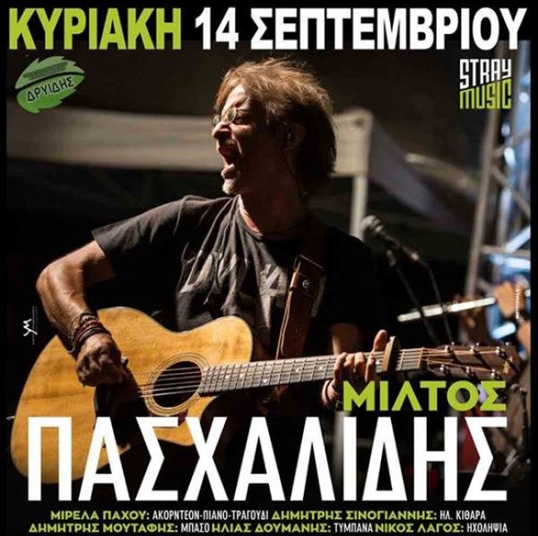 Κοζάνη 14/09/2014 Στην Αίθουσα Τέχνης η συναυλία του Μίλτου Πασχαλίδη σήμερα στις 21.30 0 Σας γνωρίζουμε ότι η συναυλία του Μίλτου Πασχαλίδη θα διεξαχθεί σήμερα Κυριακή 14 Σεπτεμβρίου 2014, στην Αίθουσα Τέχνης, στις 9.30 μ.μ. Σύλλογος Δρυϊδης Πληροφορίες 6987162790 6985662948