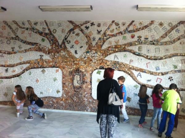 Τα βλέμματα γονέων, εκπαιδευτικών και μαθητών ήταν στραμμένα στο εικαστικό έργο που κοσμεί το μεγάλο τοίχο στο ισόγειο του σχολείου και αναπαριστά το δένδρο της γνώσης. Πρόκειται για ιδέα της εικαστικού Δώρας Ζήγρα που υλοποιήθηκε στα πλαίσια του εθελοντισμού με μαθητές του σχολείου.
