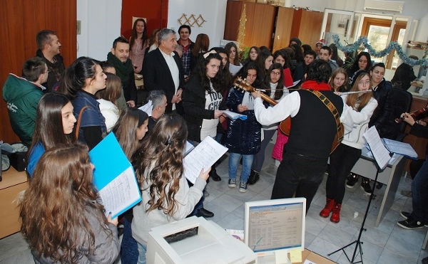 Παράλληλα, σήμερα το πρωί, οι μαθητές του Γυμνασίου Σερβίων επισκέφθηκαν το Δημαρχείο και έψαλαν κάλαντα και χριστουγεννιάτικους ύμνους.