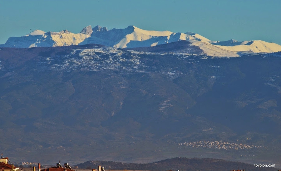 Ο χιονισμένος Όλυμπος όπως φαίνεται από την Κοζάνη και συγκεκριμένα από τον Ξενία.
