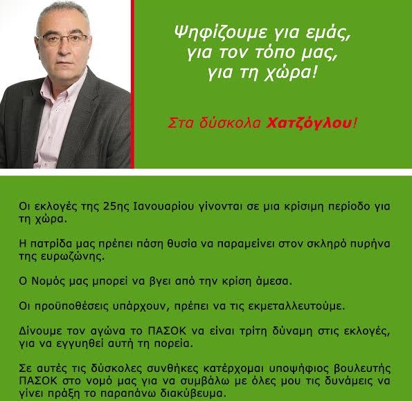 Χατζόγλου Παναγιώτη, Υποψήφιος Βουλευτής Π.Ε. Κοζάνης με το ΠΑΣΟΚ
