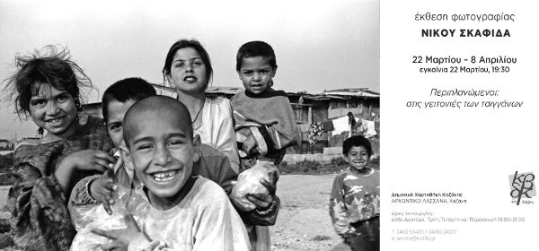 Έκθεση φωτογραφίας του κ. Νικολάου Σκαφίδα, φωτογράφου, με θέμα: “Περιπλανώμενοι: στις γειτονιές των τσιγγάνων”, με αφορμή την ημέρα ρατσισμού, 21η Μαρτίου, και την ημέρα γιορτής των Ρομά, 8η Απριλίου, θα πραγματοποιήσει η Κοβεντάρειος Δημοτική Βιβλιοθήκη Κοζάνης, στο χώρο της Δημοτικής Χαρτοθήκης στο «Αρχοντικό Λασσάνη».
