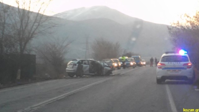 Σήμερα (18-03-2015) το πρωί, στο 21ο χλμ. της παλαιάς Εθνικής Οδού Κοζάνης-Θεσσαλονίκης, Ι.Χ.Ε. αυτοκίνητο που οδηγούσε 35χρονος ημεδαπός και στο οποίο επέβαινε 19χρονη ημεδαπή, εξετράπη της πορείας του και προσέκρουσε σε δέντρο με αποτέλεσμα τον θανάσιμο τραυματισμό αμφοτέρων.
