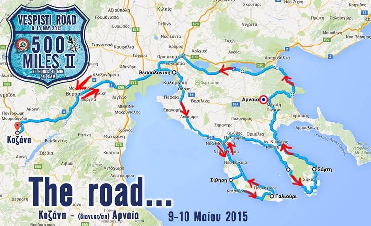 Πέρσι ως Vespa Club Koζάνης διοργανώσαμε τα πρώτα “500 μίλια” ξεκινώντας από την Κοζάνη και πηγαίνοντας Ιωάννινα, Αμφιλοχία, Ναύπακτο, Γαλαξίδι για διανυκτέρευση και την επόμενη μέρα, πέρασμα από Γραβιά, Λαμία, Λάρισα και κατάληξη στην Κοζάνη διανύοντας 839 χιλιόμετρα σε 24 ώρες πάνω σε Vespa.