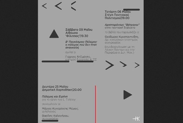 με εισηγητή τον Αντιστράτηγο ε.α κ. Γεώργιο Ντζιμάνη, επίτιμο διοικητή Α΄ Σώματος Στρατού, το Σάββατο 9 Μαΐου στις 7:30 στην αίθουσα Φίλιππος.