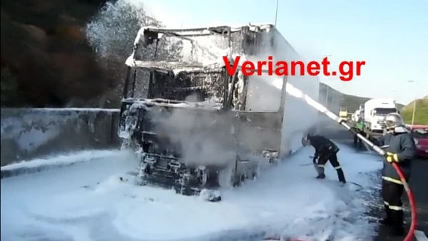 Ολοσχερώς καταστράφηκε φορτηγό ψυγείο (νταλίκα) διεθνών μεταφορών όταν ξέσπασε πυρκαγιά στην καμπίνα του οδηγού. Το φορτηγό με βουλγάρικες πινακίδες κυκλοφορίας το οποίο ανήκει σε εταιρεία μεταφορών ελληνικών συμφερόντων με έδρα τη Βουλγαρία ήταν φορτωμένο με κατεψυγμένα κρέατα με προορισμό την Ισπανία.