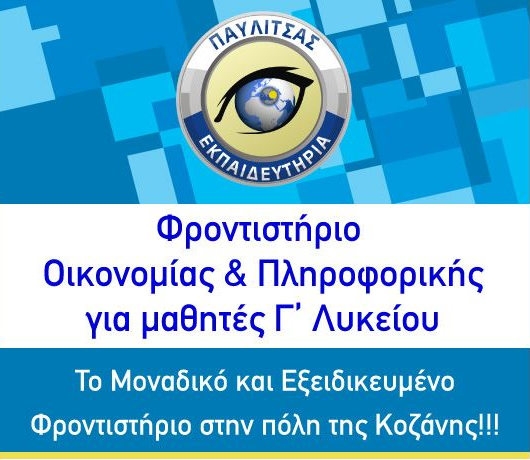 Με ολοκληρωμένο σχεδιασμό που καλύπτει τις σύγχρονες ανάγκες των μαθητών και οδηγεί στην επιτυχία, δημιουργήθηκε και λειτουργεί στο Κέντρο της Κοζάνης, το μοναδικό εξειδικευμένο φροντιστήριο Οικονομίας και Πληροφορικής, των εκπαιδευτηρίων Παυλίτσα.