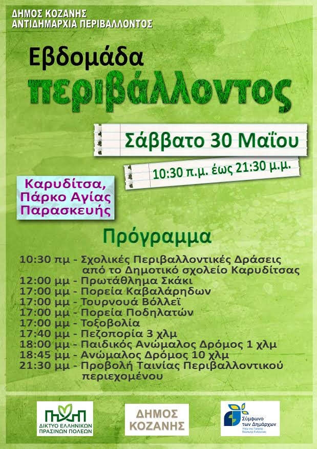 Φέτος για πρώτη χρονιά ο χώρος του πάρκου επιλέχθηκε για τη διοργάνωση περιβαλλοντικών δράσεων που θα γίνουν στις 30 Μαΐου με αφορμή την εβδομάδα Περιβάλλοντος (30 Μαίου-7 Ιουνίου) της Αντιδημαρχίας Περιβάλλοντος του Δήμου Κοζάνης.