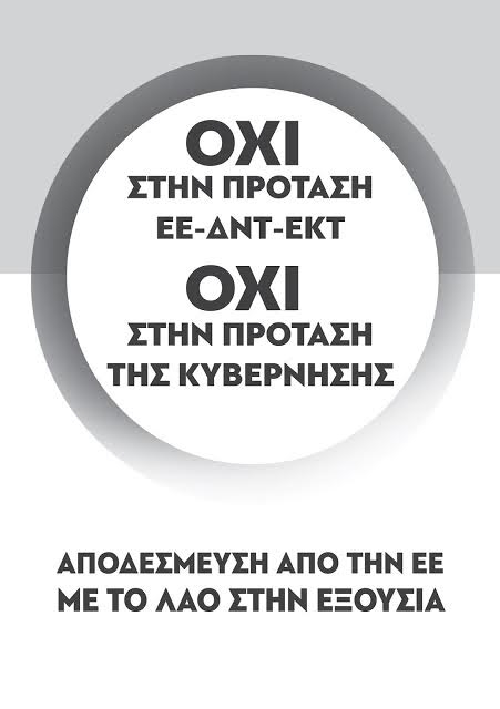 «Όχι στην πρόταση των ΕΕ – ΔΝΤ – ΕΚΤ. Όχι στην πρόταση της κυβέρνησης. Αποδέσμευση από την ΕΕ, με το λαό στην εξουσία»