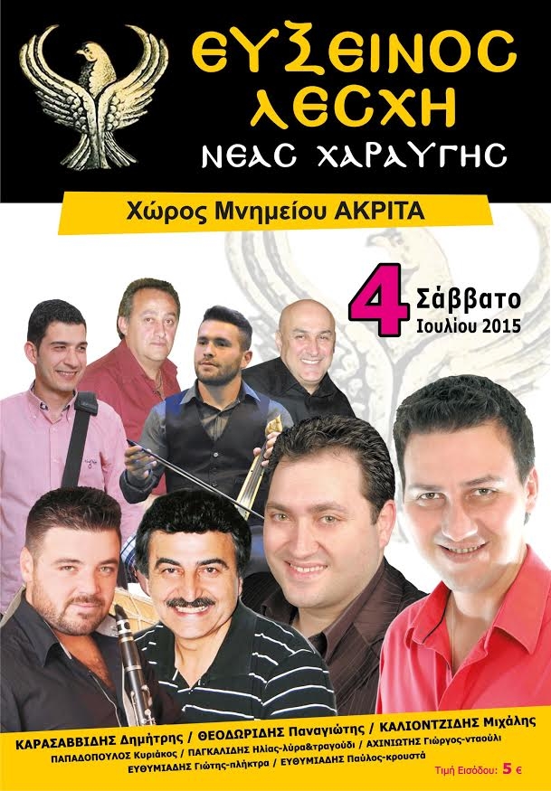 Το Σάββατο 4 Ιουλίου 2015, σας προσκαλούμε στο μεγάλο Ποντιακό Γλέντι, στο Μνημείο του ΑΚΡΙΤΑ, στη Νέα Χαραυγή Κοζάνης.