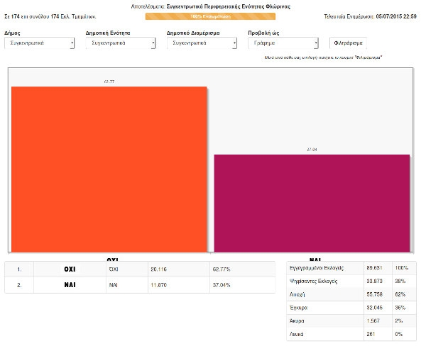 Δείτε τα τελικά αποτελέσματα του Δημοψηφίσματος στην Π.Ε. Φλώρινας