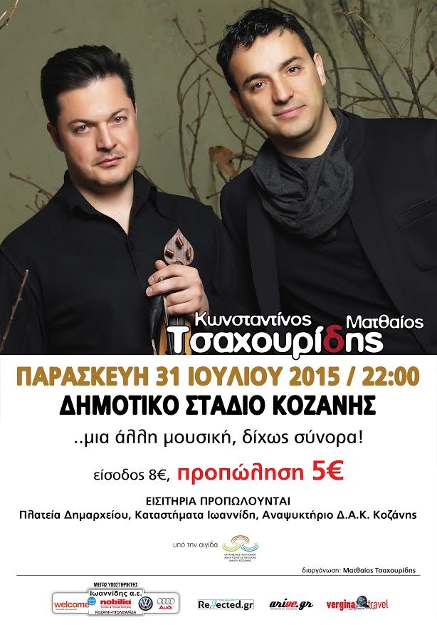 Η συναυλία πραγματοποιείται σε συνεργασία με τον Οργανισμό Αθλητισμού Πολιτισμού Νεολαίας Δήμου Κοζάνης στο πλαίσιο των εκδηλώσεων «Λασσάνεια 2015».