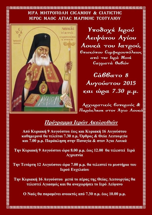 Iερά Μητρόπολη Σισανίου και Σιατίστης: Υποδοχή Ιερού Λειψάνου Αγίου Λουκά του Ιατρού.