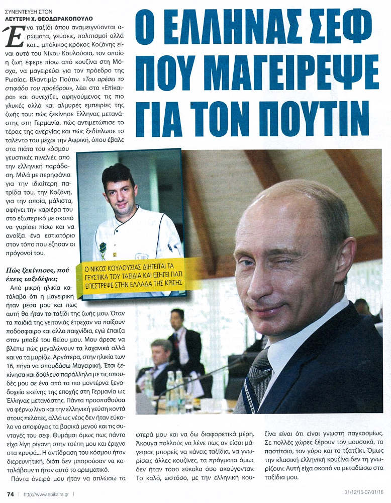 Ο λόγος για τον Νεαπολίτη Νίκο Κουλούσια που κλήθηκε στη Ρωσία για να μαειρέψει Ελληνικές γεύσεις.