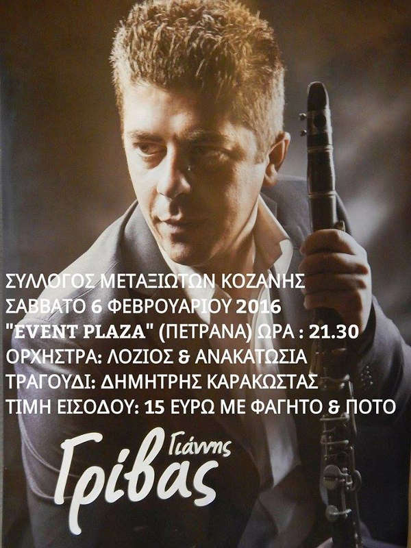 Σας περιμένουμε στον ετήσιο χορό που διοργανώνει ο Σύλλογος Μεταξιωτών Κοζάνης το Σάββατο 6 Φεβρουαρίου 2016 στο EVENT PLAZA για να περάσουμε μια όμορφη βραδιά με καλό φαγητό, ποτό και πολύ χορό.