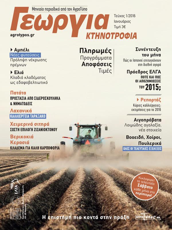 Κάνουμε, λοιπόν, αλλαγές στο περιοδικό το 2016, στον τρόπο διάθεσης και στην τιμή για να είναι προσιτό σ’ όλους, στον αριθμό των τευχών και στο εύρος της θεματολογίας για την καλύτερη δυνατή στήριξη ολόκληρου του πρωτογενή τομέα. Διατηρούμε στο ακέραιο τον απαράβατο στόχο μας της ουσιαστικής και έγκυρης ενημέρωσης. Συνεχίζουμε να έχουμε σαν βάση τις γνώσεις των ειδικών επιστημόνων τις οποίες εκλαϊκεύουμε για να φέρουμε την επιστήμη πιο κοντά στην πράξη, αφού αυτό χρειάζεται σήμερα ο πρωτογενής τομέας μας.