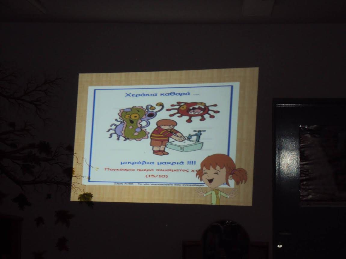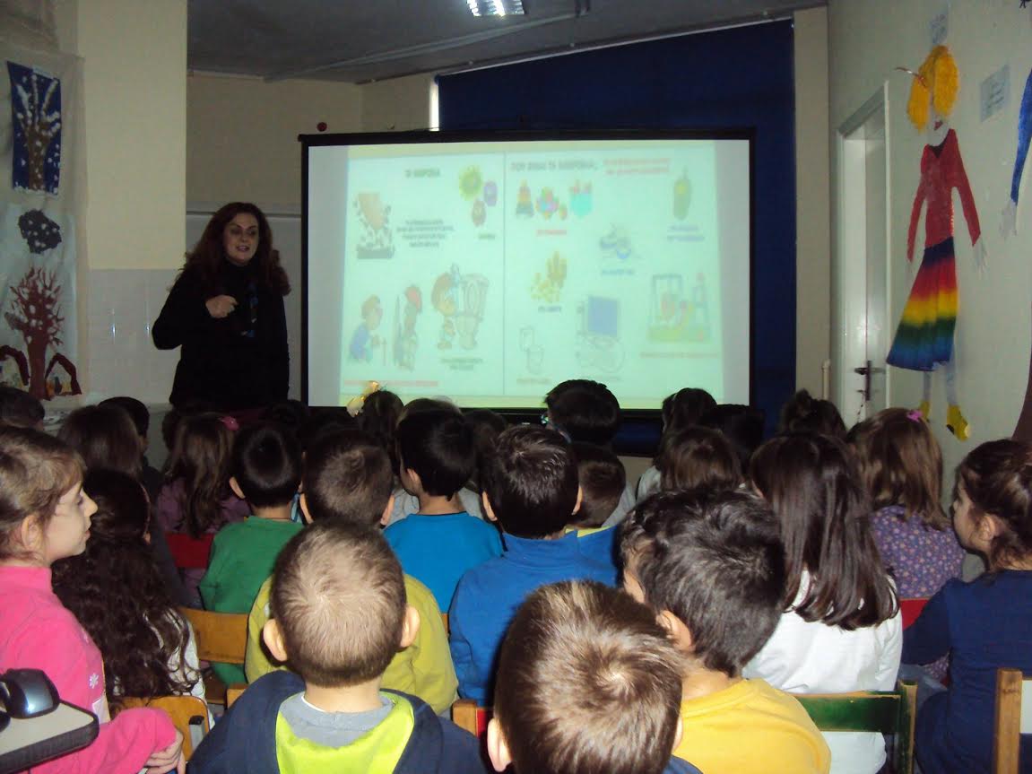 Η δράση περιλαμβάνει παρουσίαση με εικόνες, δίνοντας ιδιαίτερη έμφαση στα 6 βήματα της υγιεινής των χεριών. Ακολουθεί προβολή βίντεο “εξολόθρευσης μικροβίων” το οποίο παρακολουθούν τα παιδιά με μεγάλη αφοσίωση.Τέλος, γίνεται ένα διαδραστικό παιχνίδι στο οποίο συμμετέχουν ενεργά τα παιδιά, για να τους δείξουμε τον τρόπο διασποράς των μικροβίων στο περιβάλλον.