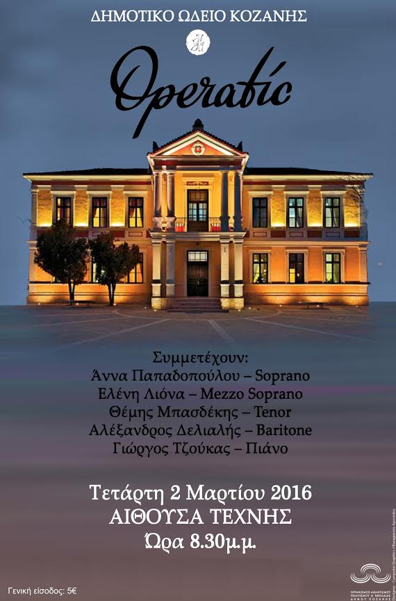 Το Δημοτικό Ωδείο Κοζάνης διοργανώνει συναυλία με τίτλο “Operatic” .