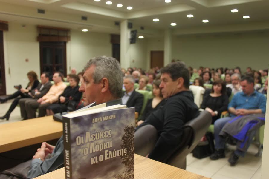 Εξαιρετική επιτυχία σημείωσε η παρουσίαση του βιβλίου της Δώρας Μακρή «Οι Λεύκες, ο Λόρκα κι ο Ελύτης», στη γεμάτη από κόσμο Κοβεντάρειο αίθουσα της Κοζάνης -με “αντίπαλο” τους αποκριάτικους ήχους των “χάλκινων” στην πλατεία-, το απόγευμα του Σαββάτου της Μικρής Αποκριάς 5 Μαρτίου 2016.