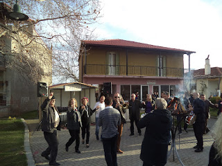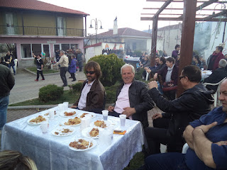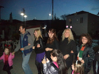 Προσφέρθηκε στον κόσμο τραχανόπιτα -τσιγαρίδες ,λουκάνικα,σουβλάκια και άφθονο κρασί και με την ορχήστρα “Μουσικόχρωμα” ο κόσμος γλέντησε με την ψυχή του έως αργά το βράδυ. Την εκδήλωση την έκλεισαν με χορό από αποκριάτικα τραγούδια.