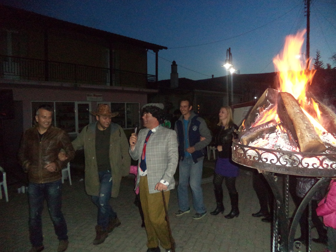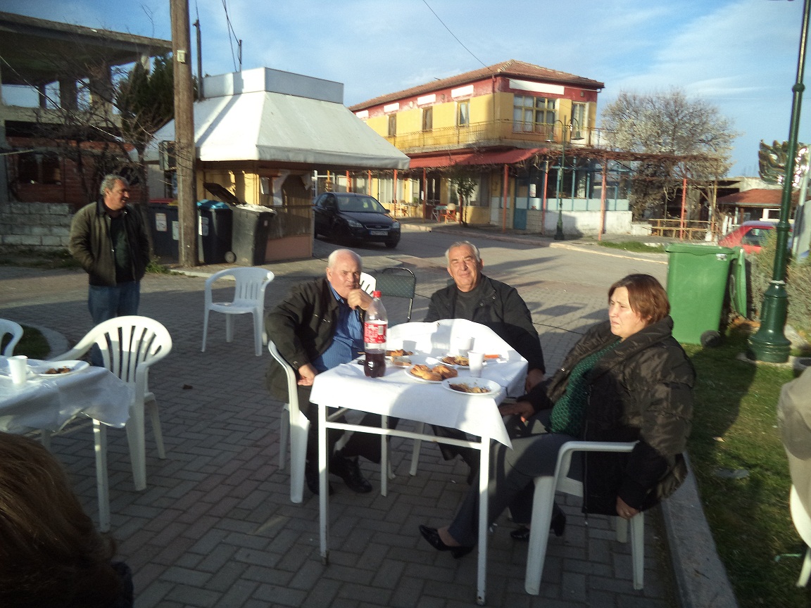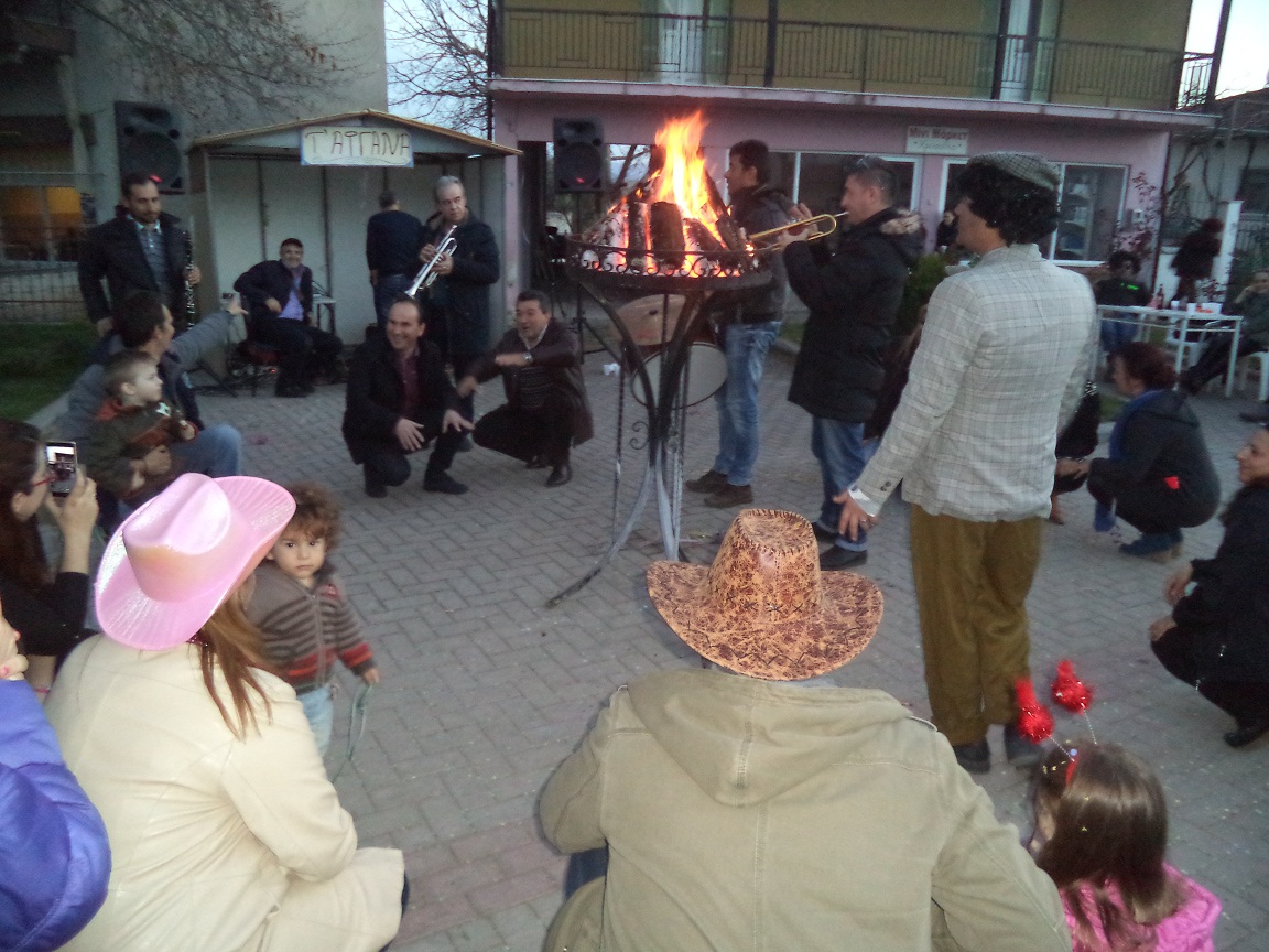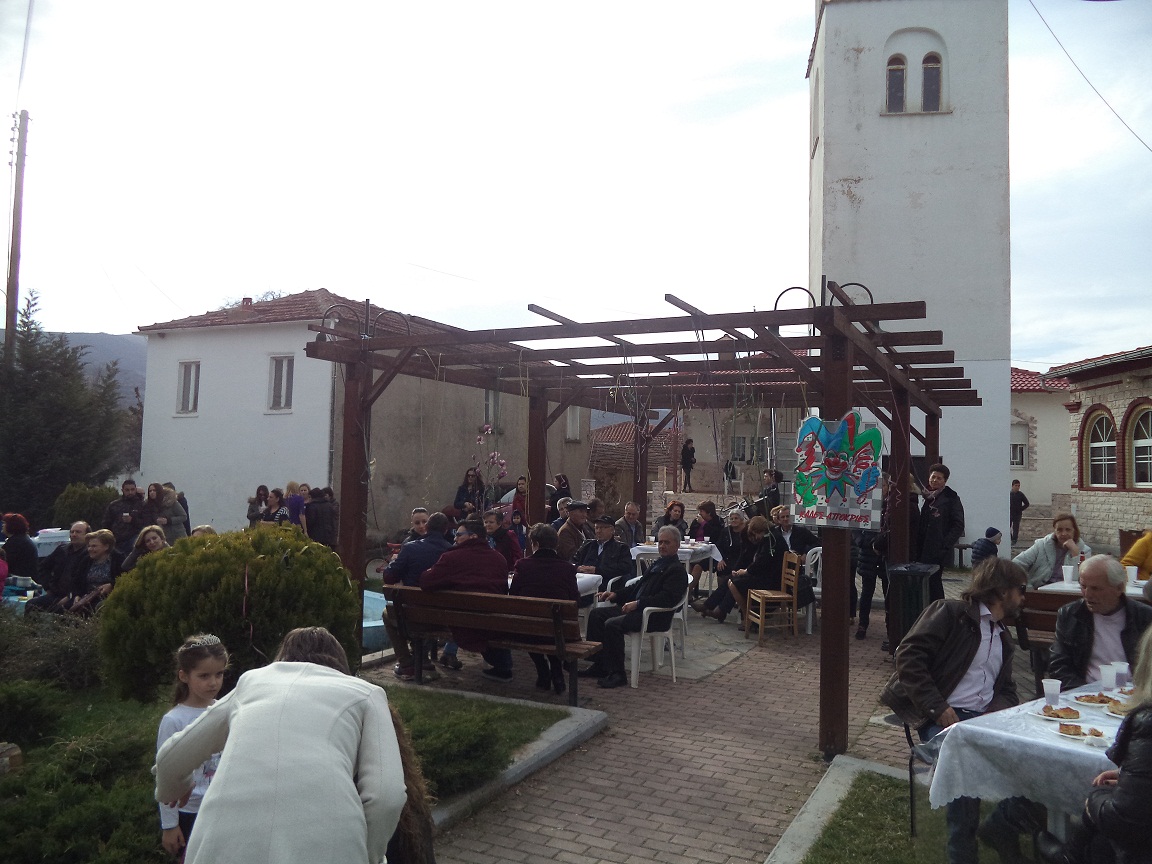 Προσφέρθηκε στον κόσμο τραχανόπιτα -τσιγαρίδες ,λουκάνικα,σουβλάκια και άφθονο κρασί και με την ορχήστρα “Μουσικόχρωμα” ο κόσμος γλέντησε με την ψυχή του έως αργά το βράδυ. Την εκδήλωση την έκλεισαν με χορό από αποκριάτικα τραγούδια.
