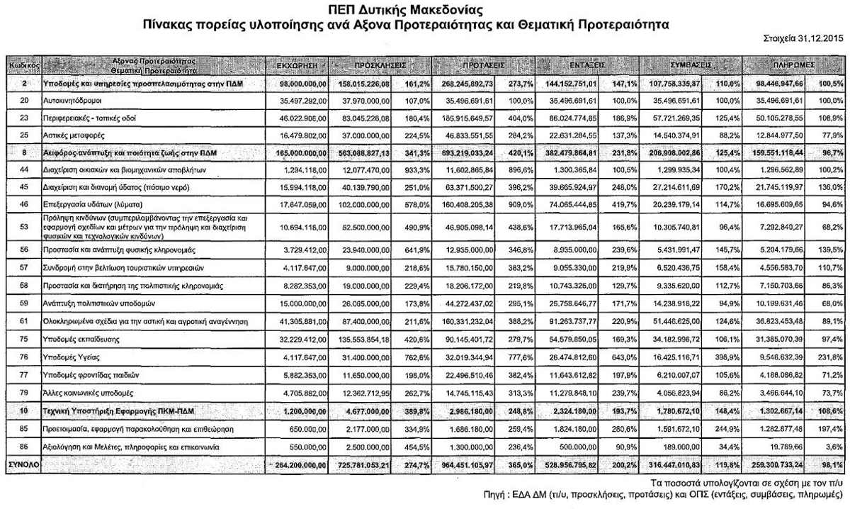Με την ευκαιρία της παράθεσης των στοιχείων των έργων που απεντάσσονται με τις πρόσφατες αποφάσεις του Περιφερειάρχη, παραθέτουμε για άλλη μια φορά τα επίσημα στοιχεία που δείχνουν τις απώλειες του ΠΕΠ Δυτικής Μακεδονίας, σύμφωνα με την απάντηση της Κεντρικής Υπηρεσίας του Υπουργείου Ανάπτυξης σε σχετικό ερώτημά μας (helpdesk ΟΠΣ) για το σύνολο του ΠΕΠ Δυτικής Μακεδονίας αλλά και σύμφωνα με τα  στοιχεία της επίσημης ιστοσελίδας της Διαχειριστικής Αρχής για το τμήμα του