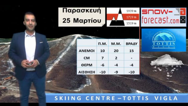Δείτε το δελτίο καιρού του τριημέρου της 25ης Μαρτίου για το Χιονοδρομικό κέντρο Βίγλας με τον Γιώργο Βασιλειάδη