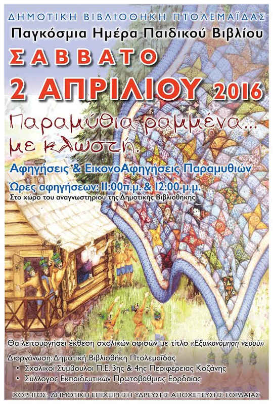 Με αφορμή την Παγκόσμια Ημέρα Παιδικού Βιβλίου σας προσκαλούμε στην εκδήλωση με τίτλο: