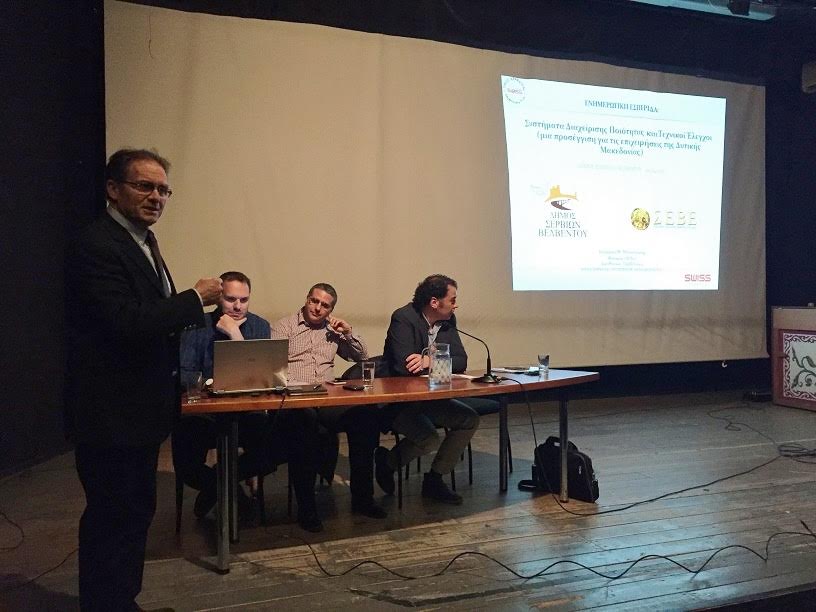 «Παράγω & Εξάγω, η σημασία του κλάδου των τροφίμων-ποτών στην εθνική και τοπική οικονομία» ήταν το θέμα που ανέπτυξε ο κ. Θωμάς Βασσάρας μέλος του Δ.Σ. του Συνδέσμου Εξαγωγέων Βορείου Ελλάδος ο οποίος και κατάγεται από το Βελβεντό, στα «Συστήματα Διαχείρισης Ποιότητας και Τεχνικοί Έλεγχοι – μια προσέγγιση για τις επιχειρήσεις της Δυτικής Μακεδονίας» αναφέρθηκε ο κ. Γεώργιος Μυλωνάκης Διευθύνων Σύμβουλος της SWISS APPROVAL TECHNISCHE BEWERTUNG S.A ενώ ο κ. Περικλής Αλειφέρης Οικονομολόγος – Σύμβουλος Επιχειρήσεων ανέπτυξε το θέμα «Χρηματοδοτήσεις στις Μικρομεσαίες Επιχειρήσεις».