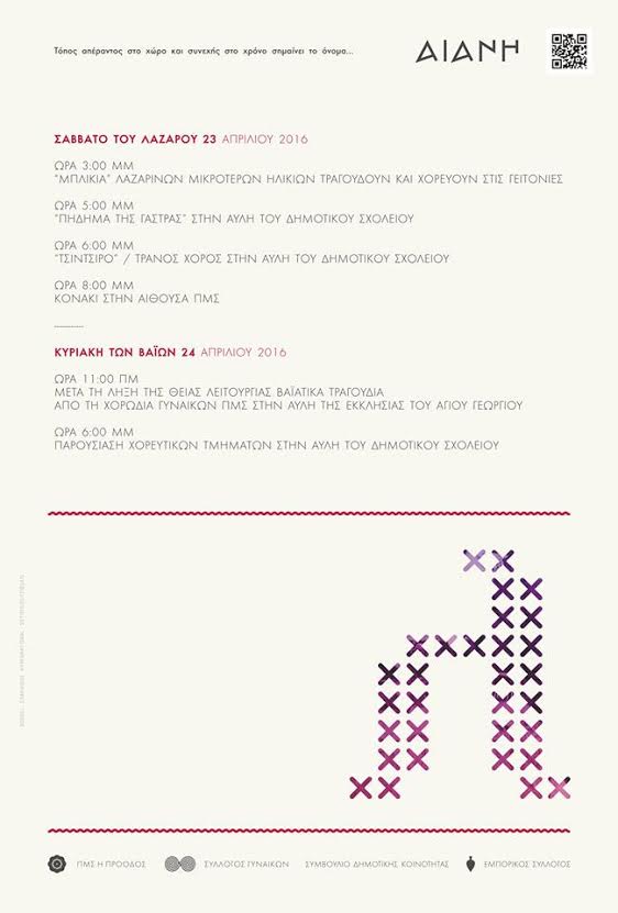 Σας προσκαλούμε να συμμετάσχετε στο ζωντανό δρώμενο της Αιανής το διήμερο πολιτιστικών και λαογραφικών εκδηλώσεων Σάββατο 23 και Κυριακή 24 Απριλίου 2016.