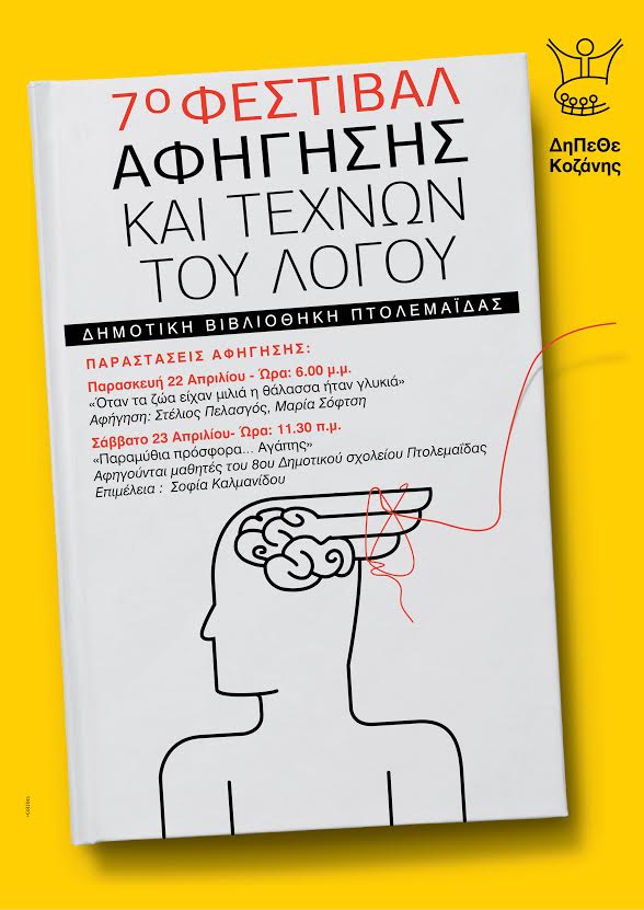 Η Δημοτική Βιβλιοθήκη Πτολεμαΐδας συμμετέχει και φέτος στο 7ο Φεστιβάλ Αφήγησης και Τεχνών του Λόγου του ΔΗΠΕΘΕ Κοζάνης 13- 24 Απριλίου