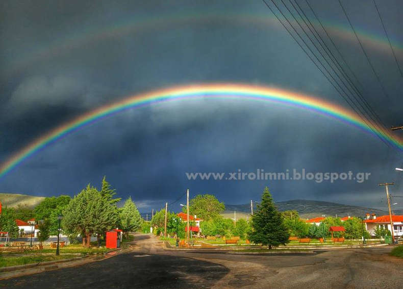 Το εντυπωσιακό διπλό ουράνιο τόξο που »στόλισε» του ουρανό της Ξηρολίμνης Κοζάνης το απόγευμα της Τρίτης 3 Μαΐου.