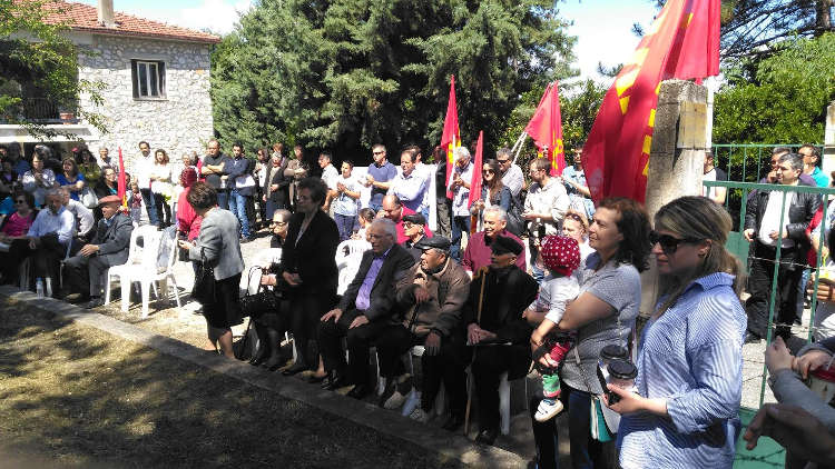 Στην ομιλία του ο σ. Γιάννης Βήττας, Γραμματέας της Επιτροπής Περιοχής Δυτικής Μακεδονίας του ΚΚΕ, έκανε εκτενή αναφορά στο ιστορικό του απεργιακού αγώνα των εργατών γης του κρατικού φυτωρίου Σερβίων τον Μάρτιο του 1936.