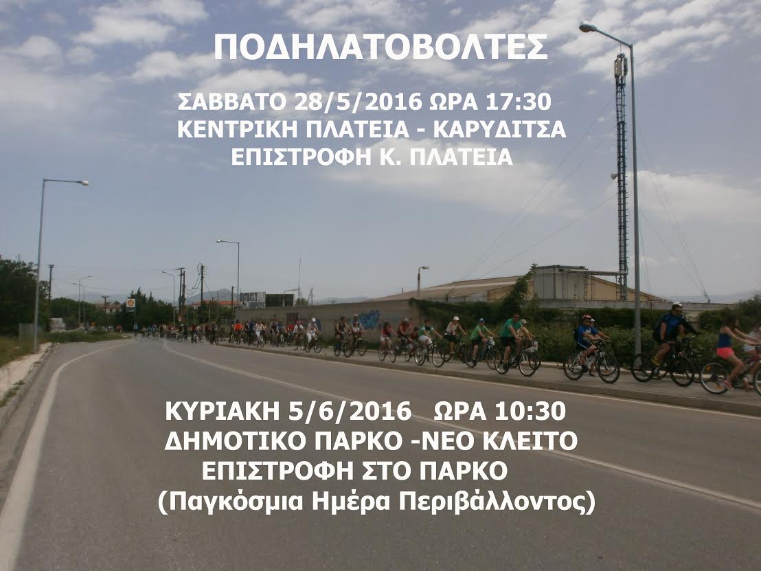 Το Σάββατο 28 Μαΐου οδηγούμε την ποδηλατοδρομία που θα ξεκινήσει στις 5.30 το απόγευμα από την κεντρική πλατεία της Κοζάνης και ακολουθώντας τον ποδηλατόδρομο θα κατευθυνθεί στο πάρκο Αγίας Παρασκευής της τοπικής κοινότητας Καρυδίτσας.