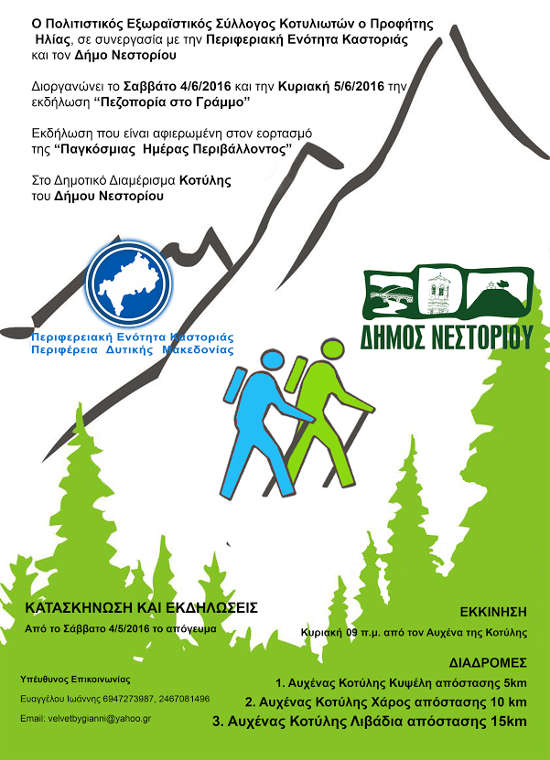 luigyugulygiulgigiuygoΟ Πολιτιστικός-Εξωραϊστικός Σύλλογος Κοτυλιωτών ο «Προφήτης Ηλίας» σε συνεργασία με την Περιφερειακή Ενότητα Καστοριάς και τον Δήμο Νεστορίου, πραγματοποιούν την «9η Πεζοπορία του Γράμμου», εκδήλωση που εντάσσεται στο πλαίσιο εορτασμού για την «Παγκόσμια Ημέρα Περιβάλλοντος».