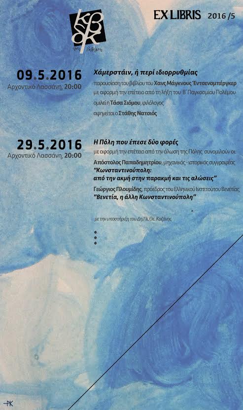 Η Κοβεντάρειος Δημοτική Βιβλιοθήκη Κοζάνης με αφορμή την επέτειο από την άλωση της Πόλης, σας προσκαλεί σε ομιλία την Κυριακή 29 Μαΐου 2016, στη Δημοτική Χαρτοθήκη