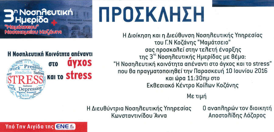 Κοζάνη 31/05/2016 Κοζάνη: 3η Νοσηλευτική Ημερίδα του Μαμάτσειου Νοσοκομείου 0 Την Παρασκευή 10 Ιουνίου στις 11:30 θα πραγματοποιηθεί η τελετή έναρξης της 3ης Νοσηλευτικής Ημερίδας του Μαμάτσειου Νοσοκομείου Κοζάνης. Για περισσότερες πληροφορίες, κλικ στην παραπάνω εικόνα.
